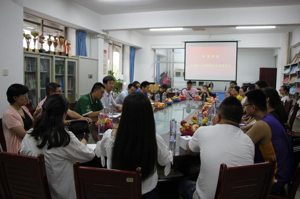 比赛后,轻松愉快的座谈会开始了,学院王政宇党委书记、贾鹏党委副书记、王晓刚副院长、部分导师、毕业研究生及部分在校研究生参加了座谈会。整个座谈会浓情深意,却不乏幽默风趣,从而使2014级毕业研究生日夜紧皱的眉头稍有展平。欢笑与泪水的交织,幸福与回忆的交错,浓浓的情谊弥漫在了整个资料室内,即便光阴荏苒,但记忆永恒。