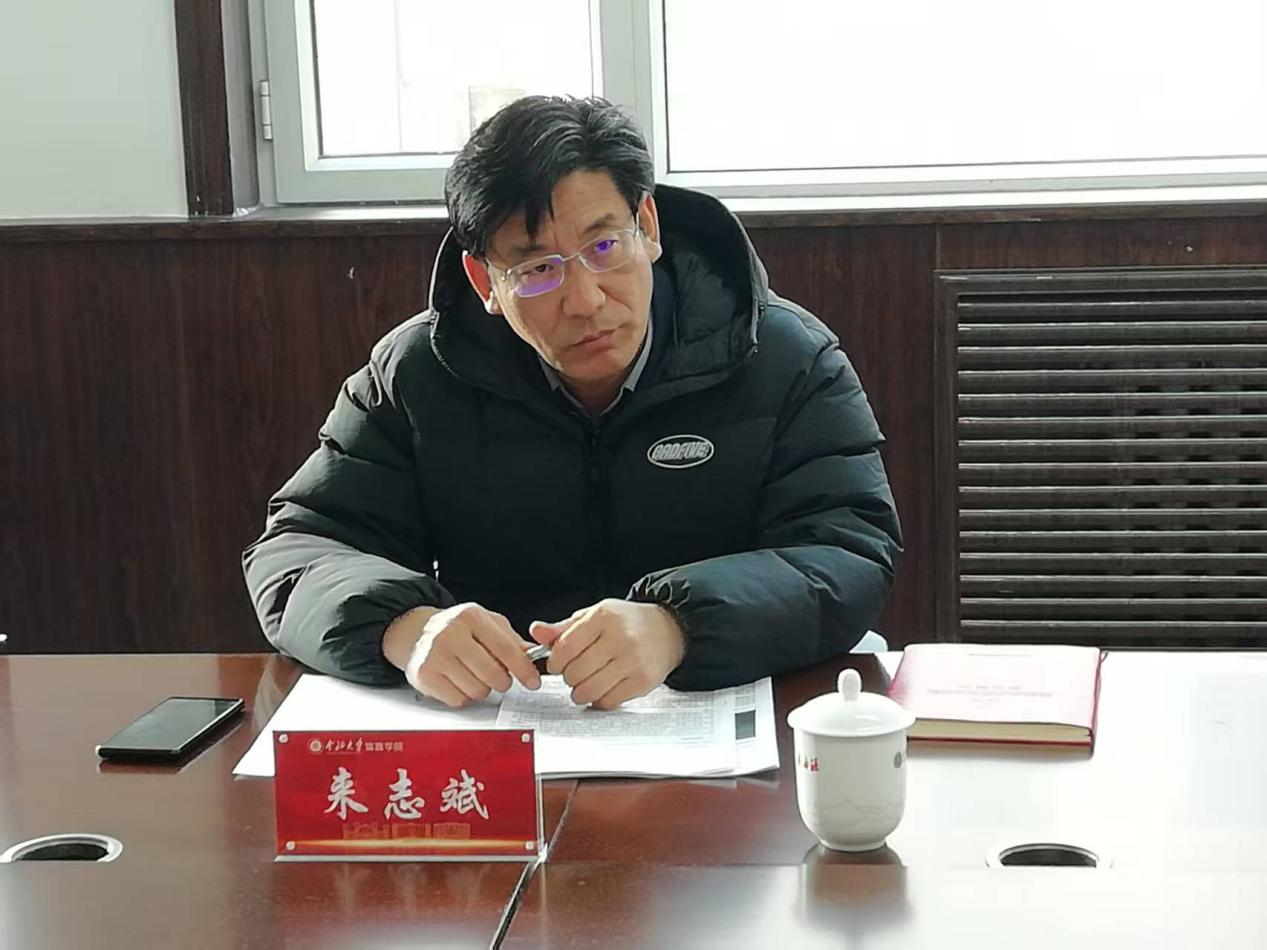 党委领导班子全体成员参加会议,院长吴剑列席,会议由院党委书记曹电康主持,副校长来志斌到会指导。