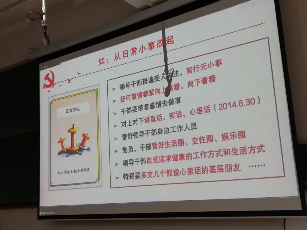 祝灵君教授从三个关键层面,深刻阐释了加强党的作风建设的重大意义、实践路径以及长效机制。其一,党风问题与党的生死存亡休戚相关;其二,需以自我革命精神全方位强化党的作风建设;其三,要深入贯彻中央八项规定精神,推动作风建设朝着常态化、长效化方向发展。在讲解过程中,祝灵君教授巧妙结合大量实际案例,以深入浅出的方式,深入剖析了新时代党的作风建设所取得的显著成效。尤其着重阐述了党员干部应当如何通过具体举措,切实落实好中央八项规定精神,为全校师生党员提供了清晰明确的学习思路与切实可行的实践方法。他明确指出,党的作风直接关系到党的形象以及人心向背,进而决定着党和国家事业的兴衰成败,故而必须传承并发扬好党的优良作风。自党的十八大以来,党中央从制定八项规定这一关键举措入手,领导干部以身作则、率先垂范,迅速行动、立行立改,持续深入地纠治“四风” 问题,稳步推进党的纪律检查体制改革,始终秉持严的基调,大力推进风腐同查同治工作,常态化开展集中教育,有力推动了党的作风建设不断向纵深发展。他着重强调,作风建设永远在路上,党员干部务必从日常小事抓起,深入学习、深刻领悟习近平总书记关于加强党的作风建设的重要论述,确保学习有质量、查摆有力度、整改有成效。