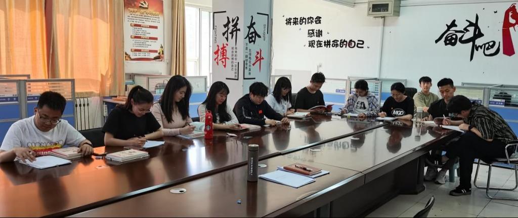 研究生(三)教室针对《习近平对学校思政课建设作出重要指示强调》进行学习。