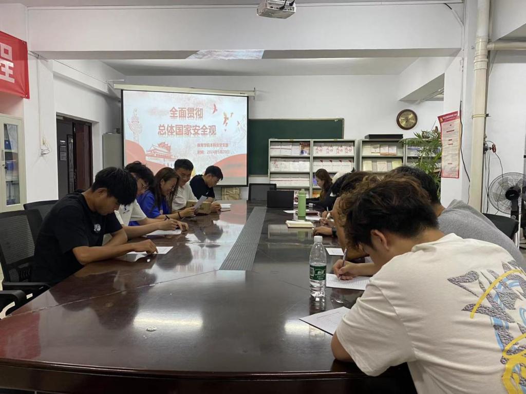 本科生党支部于5月20日上午9:30在学院三层“党员之家”召开“全面贯彻总体国家安全观”学习会议,本科生党支部全体党员参加,李士荣、李佳怿老师出席并担任主持人。