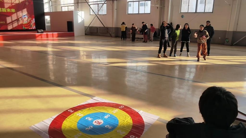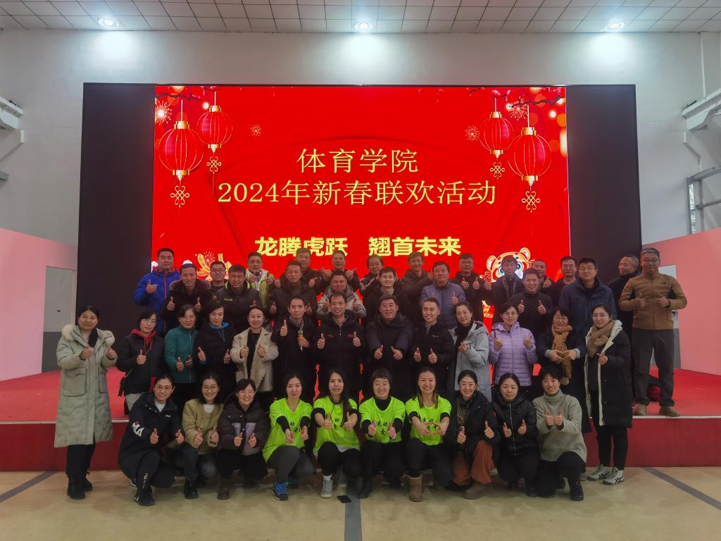 院领导及全体教师在学校东区训练馆开展“龙腾虎跃、翘首未来”为主题的教职工新年活动。