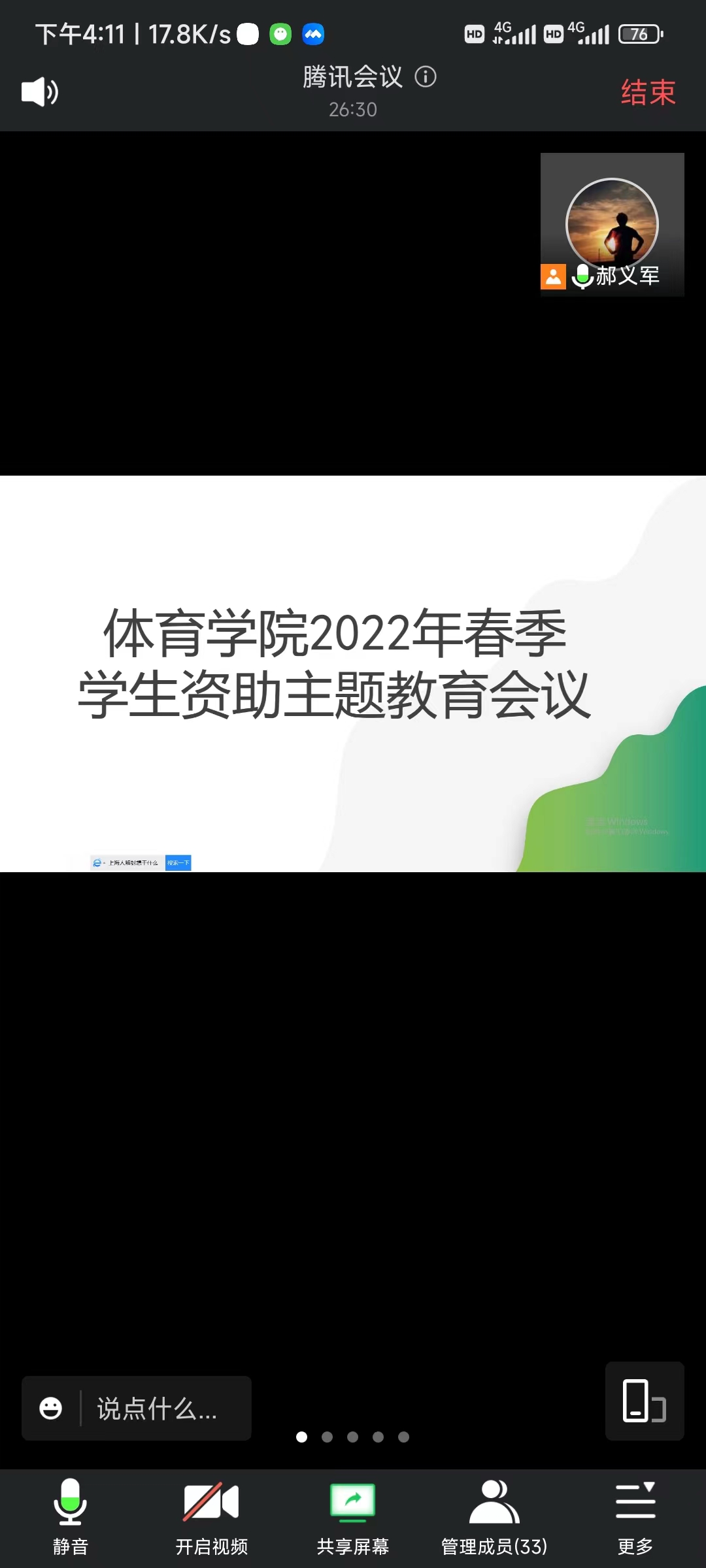 以线上线下同步进行的方式召开2022年春季诚信教育暨资助政策宣讲会议,由李士荣主讲,全体做爱视频