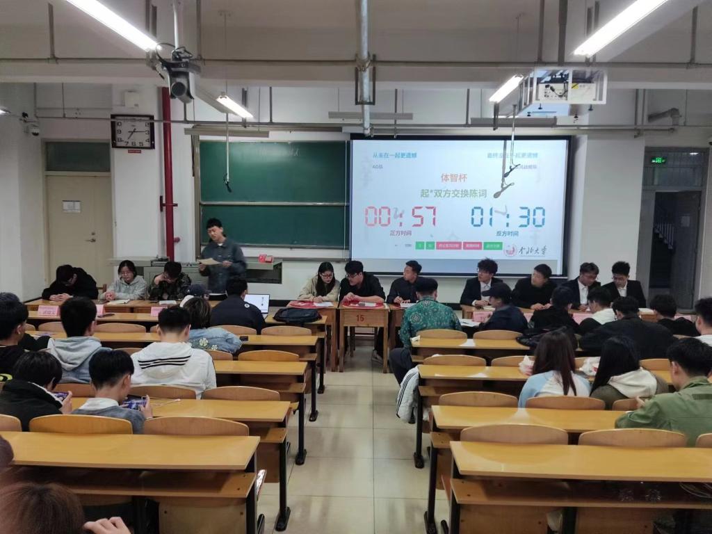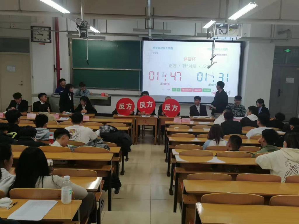 于3月24日晚在15206H教室举办了“体智杯”辩论赛。本场辩论赛由学生会主席刘文松主持。