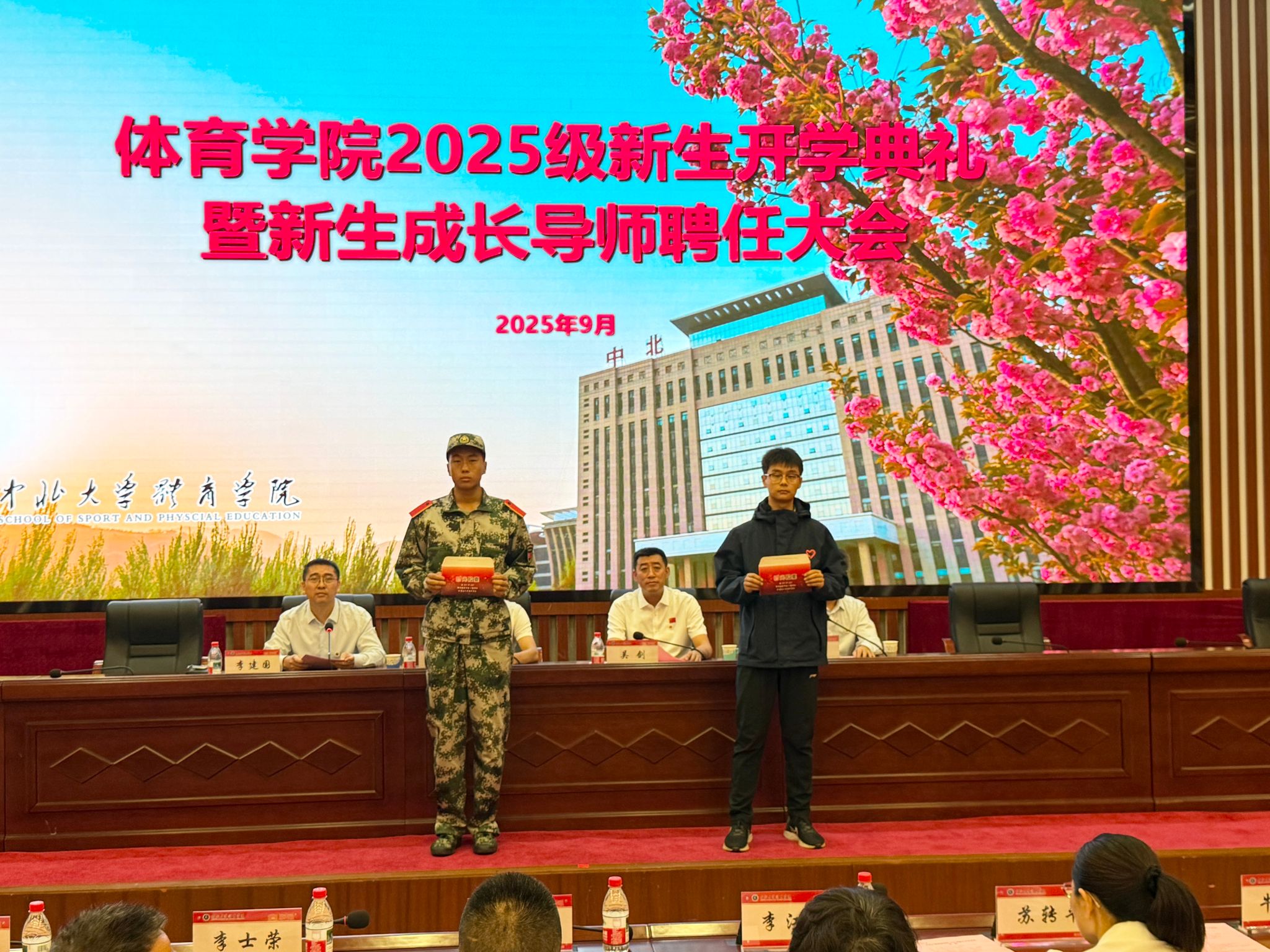 新生代表文冠方在发言中表达了加入中北体育大家庭的喜悦,并承诺将以青春和汗水奋力追逐体育梦想。在校生代表、院学生会主席韩金鑫以“致知于行”的校训为引,鼓励新生在训练、学习与社会实践中不断突破自我,将个人成长融入学校“双一流”建设进程中。教师代表、新生班主任王晓鹏寄语新生,希望他们珍惜大学时光,在自律与坚持中锤炼过硬本领,在体育精神的引领下成长为有理想、有担当的新时代体育人。