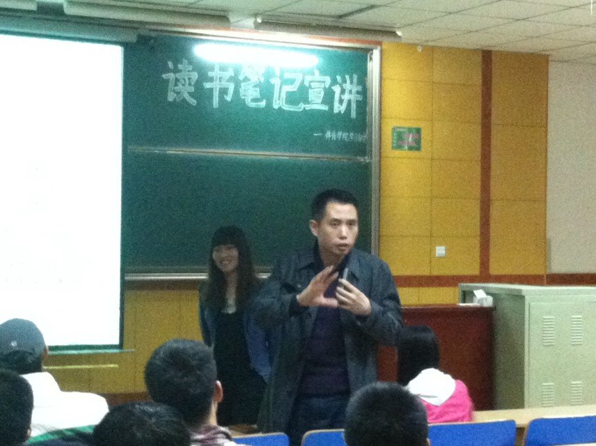 读书笔记活动正在如火如荼的进行中,党总支副书记贾鹏老师和分团委书记唐伟老师特意组织进行了读书笔记的宣讲活动,希望同学们能对读书产生更近一步的兴趣。学生会各部门挑选学生代表与大家共同分享了近期读书的心得与体会。