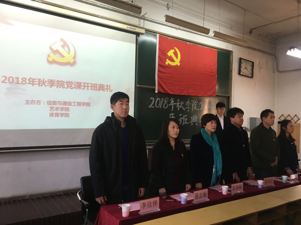 为加强学生思想教育,深入学习和掌握党的理论知识,进一步了解国情、认识社会,信息与通信工程学院、体育学院、艺术学院于2018年11月17日—18日联合举办了为期两天的秋季院党课培训。