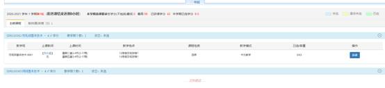 点击对应教学班后面的选课按钮进行选课,选课成功后选课按钮变为退选按钮,如需退选点击退选按钮。