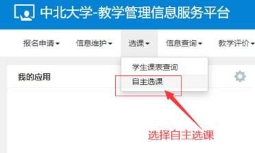登录教务系统后,选择选课->自主选课进入选课页面。