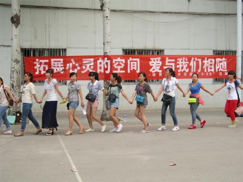 5月21日下午4时30分,体育与艺术院组织大一全体学生,在中区旧篮球场开展了主题为“拓展心灵的空间,爱与我们相随”的心理素质拓展活动。学院党总支副书记曹凤才老师,学生科长贾鹏老师以及各班班主任一起参加了本次素质拓展活动。本次活动由学院学生科长贾鹏老师组织与策划。