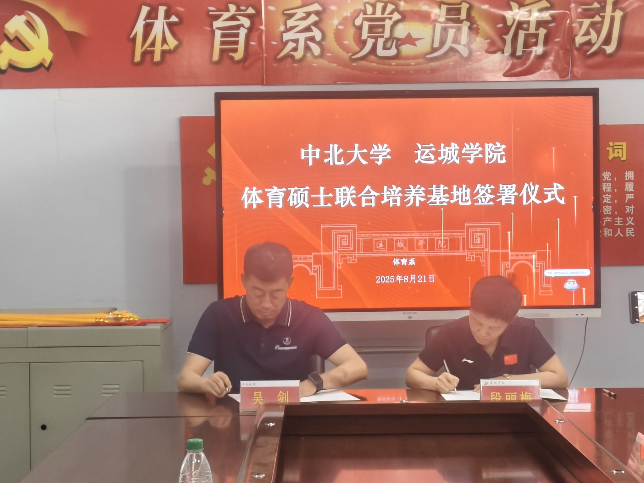 为了提高我院研究生培养质量,拓展联合培养基地,加强对外合作交流。8月21日上午,我院在吴剑院长的带领下,一行三人赴运城学院体育系签约体育硕士联合培养基地仪式。运城学院体育系党政班子成员共同出席签约仪式。