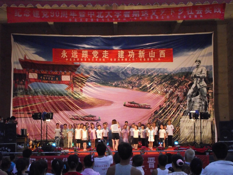 体育与艺术学院35名学生在院团委书记田维飞老师和研究生助理赵迎辉的带领下走进了柳林县三交镇,开始了我们的为期10天的暑期“三下乡”社会实践志愿服务活动。此次活动的主要目的在于让大学生长知识、增才干,以“永远跟党走,建功新山西,保护母亲河,溯源三晋黄河文化”为宗旨。其主要活动有:(1)宣讲党史(2)庆祝建党90周年--走进新农村文艺演出,(3)义务支教,(4)关于新农村建设的社会调查,(5)保护母亲河,溯源三晋黄河文化。