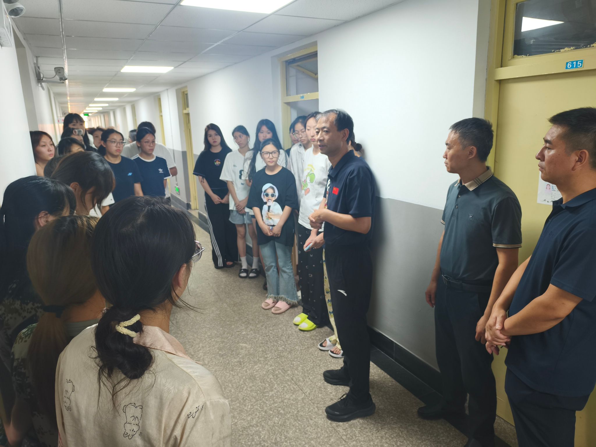 慰问期间,学院领导和老师们分组前往各新生宿舍楼,逐间走进宿舍与同学们面对面交流。他们细致询问新生的住宿环境适应情况与日常生活需求,耐心倾听大家初入校园的感受与困惑,同时反复叮嘱同学们要时刻绷紧安全弦,做好人身、财产及用电安全防护。此外,领导老师们还对新生寄予深切期望,鼓励大家快速调整身心状态,以饱满的热情、积极的姿态融入大学生活,在学习与成长中收获充实的校园时光。