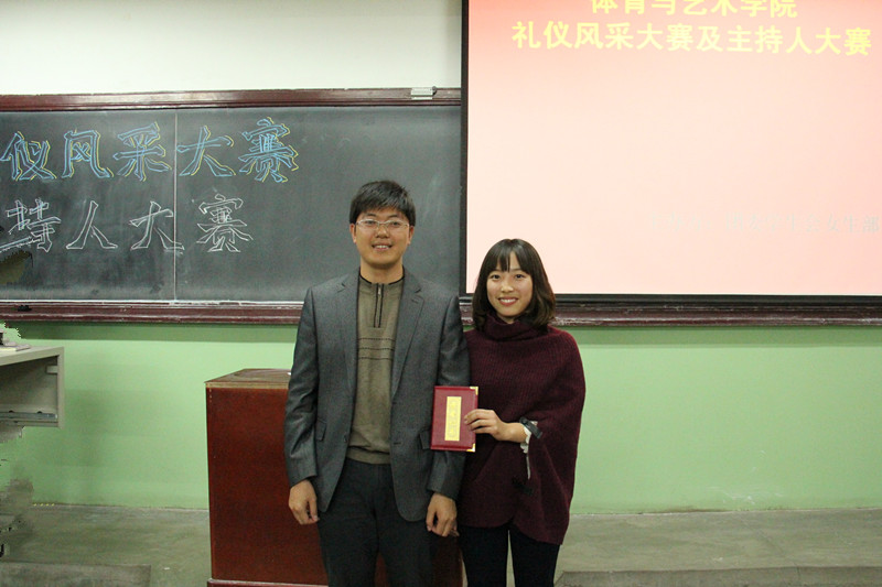 此次礼仪比赛12100441班郎琳琳以微小的差距赢得了一等奖,而主持人大赛的获一等奖者是11100341班的米军霞。最后团委书记田维飞老师在观看完比赛后为获奖选手颁奖并讲话,肯定了本次活动的意义同时也对此活动的不足点评,为我们以后的活动举办提出新的要求和期望。