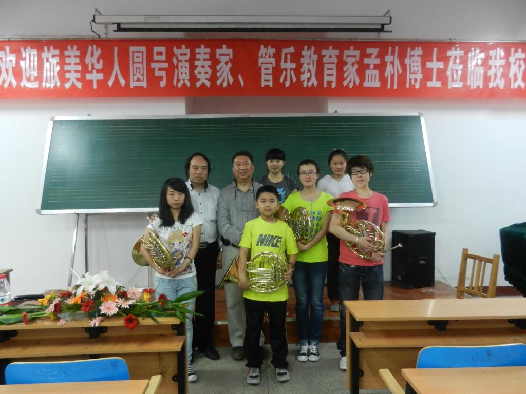 2012年5月18下午3:00和19日,著名旅美华人圆号演奏家、管乐教育家孟朴博士,在体育与艺术学院音乐系多媒体教室做了一堂关于“美国综合大学管乐现状与当代中国综合大学管乐发展”的公开讲座和圆号公开课。孟朴博士是我国改革开放后,首度回国发展报效祖国的海外归国赤子中的一员佼佼者。16岁开始学习圆号,1984年赴美深造,1988年在美国匹斯堡杜堪大学获硕士学位,师从匹茨堡交响乐团圆号演奏家罗纳德·施耐德尔。同年在美国亚利桑那大学任圆号专业教师,同时开始攻读交响乐副科及圆号演奏专业博士学位。在此期间师从凯斯·约翰逊教授。1996年至今被聘中央音乐学院任教。1998年被选为国际圆号协会理事会理事。2000年成功策划和举办了国际圆号年会——北京国际圆号艺术节,现为中国音协圆号学会副会长兼秘书长。
