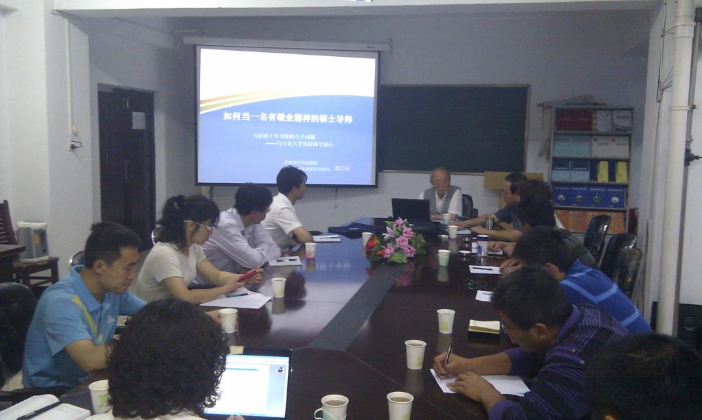 指导工作,是学院的老朋友。他不辞辛劳,为我院新增的硕士生导师作指导报告,以其渊博的学识,新颖的观点,诙谐的语言,生动的肢体动作,忧国忧民的高尚人格魅力,成为年轻硕导们学习的楷模。