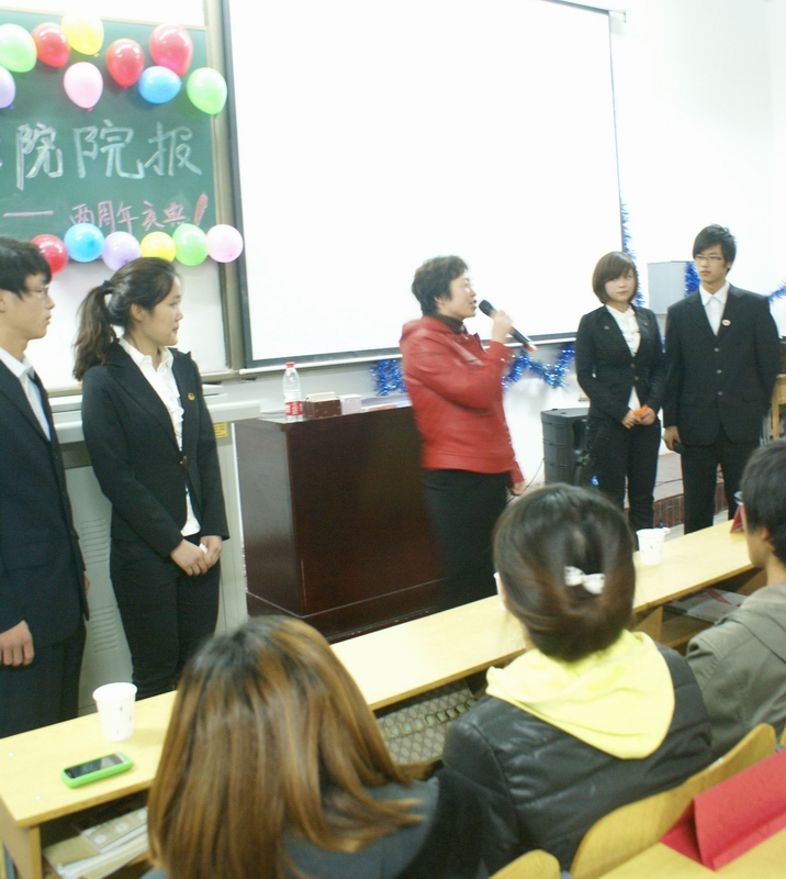 11月6日晚19:30,我院在12201召开院报创刊两周年庆典。出席活动的领导与嘉宾有:党总支书记王琳老师、院团委书记田维飞老师、大学生新闻社社长、广播站站长、各学院记者站站长、各社团(协会)会长等。