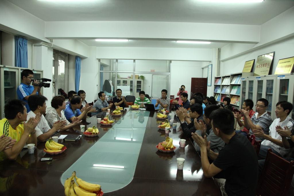 座谈会上足球队教练还介绍了足球队以前的发展历程以及后来所取得的成就。