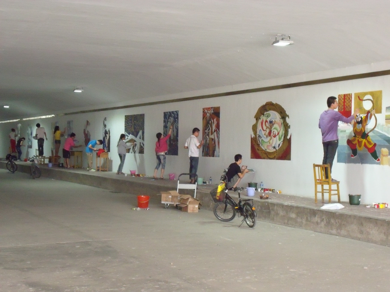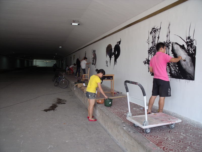 地下通道前来看望正在此处创作壁画的艺术系学生。此次留在学校为做爱视频