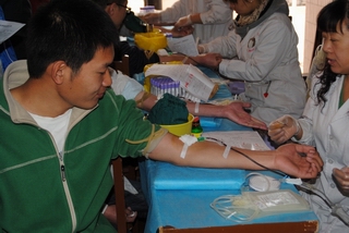 献血场地设在科艺院的大厅内, 本次活动得到了我院领导的大力支持,并把无偿献血活动作为一项经常性活动来抓。10100441团支部成员协助太原市红十字血液人员对献血者进行一系列的相关检测。全校师生也非常积极地报名参与,响应此次活动的倡议,并参与活动。截止到下午一点钟,血车上的血袋就已经满了,而此时来献血的同学仍陆续不断。活动期间,约100多名志愿者加入到此次活动中来,帮助血液中心医务人员处理各方面的事情,每个人都脸上都洋溢着笑容,因为自己做了真正有意义的事情。