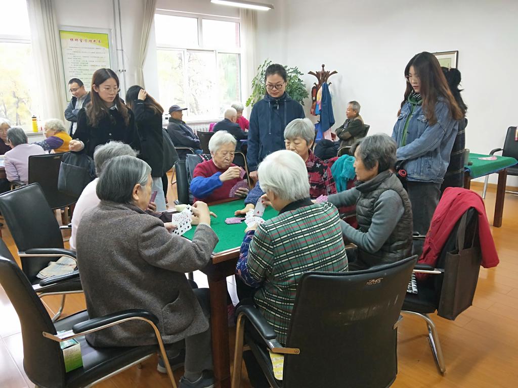 党员与老人们进行棋牌运动的交流与切磋。棋牌运动深受老年人的喜爱,它是以脑力运动为主的活动,可提高人的记忆力与大脑思维能力,还可以丰富老年人的晚年生活。我们大学生党员在对老人棋牌运动的观摩后,向老人们传授专业棋牌运动的竞赛规则及战术方法,同时老人们也向我们的学生党员分享以往自己总结归纳的棋牌战术经验。