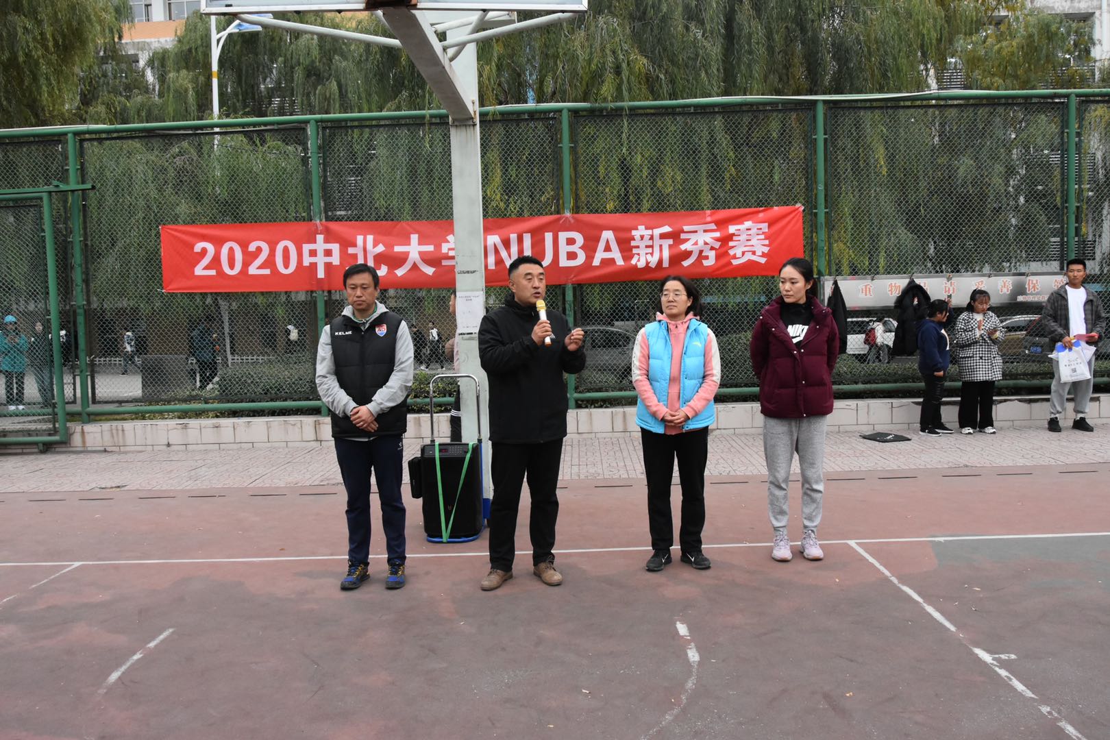 张扬老师和王粟老师出席了开幕式。本次比赛共有全校各院十七支男子篮球代表队和十六支女子篮球代表队参加。