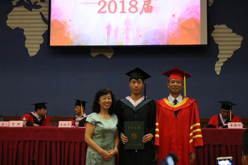2018届优秀毕业生学生名单,并由全体院领导为获奖学生颁发证书;院长曹电康教授代表学院为全体毕业生致词,曹院长不仅表达对毕业生们的衷心祝福和不舍之情,同时也给他们提出了几点建议和殷切希望,希望他们在以后的工作道路上不停止学习、踏实做事、老实做人。