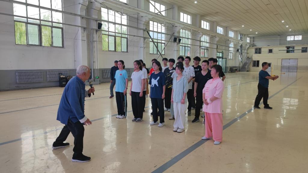 本次活动由著名武术家、中国武术九段、傅山拳法省级非遗传承人张希贵先生携其弟子韩秀文女士亲临授课。张希贵老师以88岁高龄向我院师生展示了傅山拳法的独特魅力和深厚内涵,亲自讲解并示范技术动作,其动作流畅、刚柔并济,赢得了在场师生的阵阵掌声。他还强调了傅山拳等传统武术在传承中华文化、弘扬民族精神方面的重要作用,不仅体现了中华民族的智慧,更承载了深厚的文化底蕴。